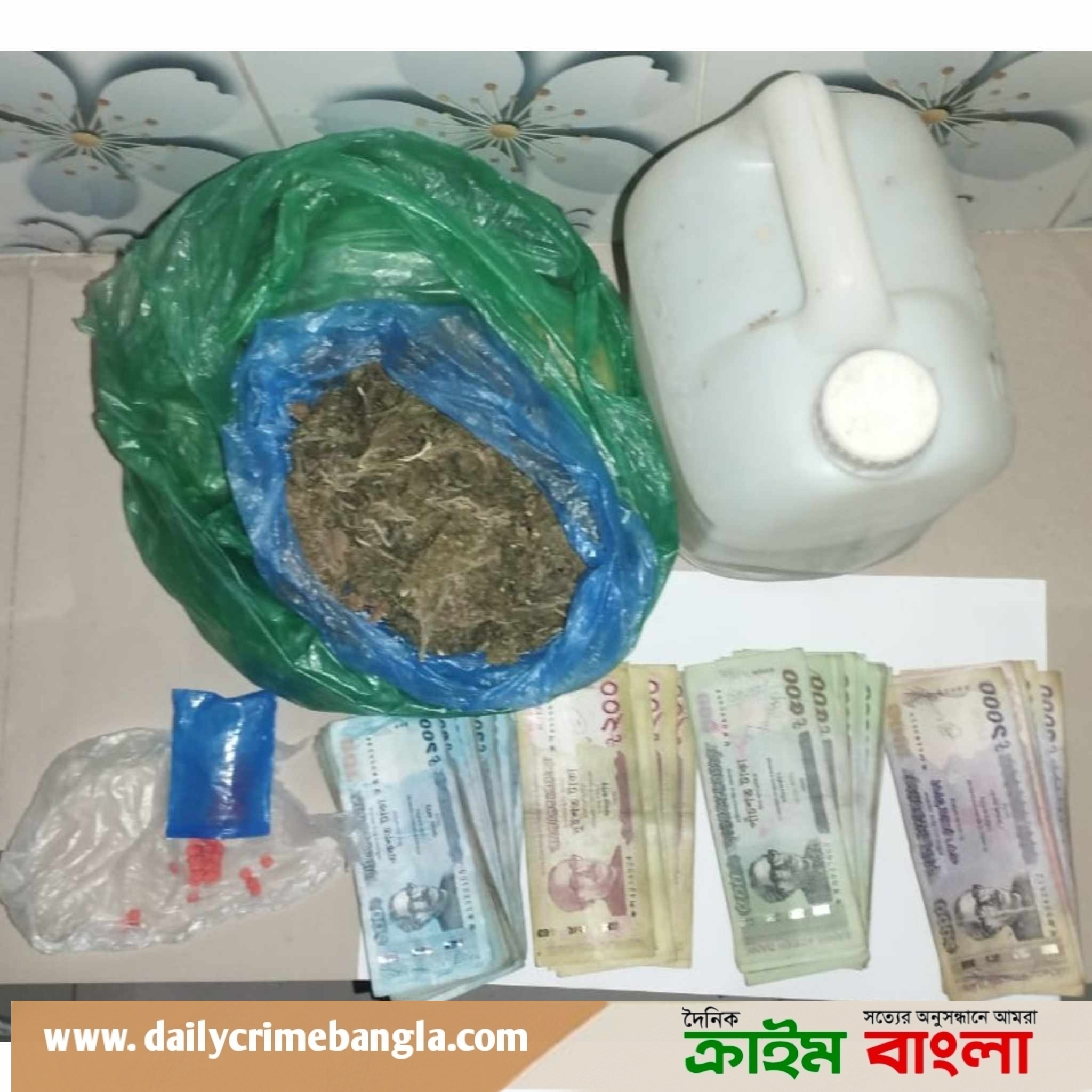 পটুয়াখালী ডিবি পুলিশ জানান, পটুয়াখালী পুলিশ সুপার মোঃ সাইদুল ইসলাম, বিপিএম, পিপিএম,র দিকনির্দেশনায় বুধবার (২১শে ফেব্রুয়ারী) দিবাগত রাত ৮টার দিকে গোপন তথ্যের ভিত্তিতে ডিবি পুলিশের এসআই (নিঃ) সম্বিত রায় সঙ্গীয় অফিসার ও ফোর্সসহ আদাবাড়িয়া ইউনিয়নের আদাবাড়িয়া গ্রামে অভিযান চালিয়ে একাধিক মাদক মামলার আসামি মোঃ লিটন খন্দকার (৪০) এর বসত ঘরের সামনে থেকে ০১টি নীল রংয়ের পলিথিনের মধ্যে রক্ষিত ৫০০ (পাঁচশত) গ্রাম গাঁজা, ০১টি নীল রংয়ের এয়ার টাইট জিপারের মধ্যে রক্ষিত ১শত পিচ ইয়াবা ট্যাবলেট, মাদক বিক্রির নগদ ২৬ হাজার টাকা এবং ০১টি সাদা রংয়ের প্লাস্টিকের জারিকেনের মধ্যে রক্ষিত ০৫ লিটার দেশীয় তৈরী মদ উদ্ধার করা হয়।