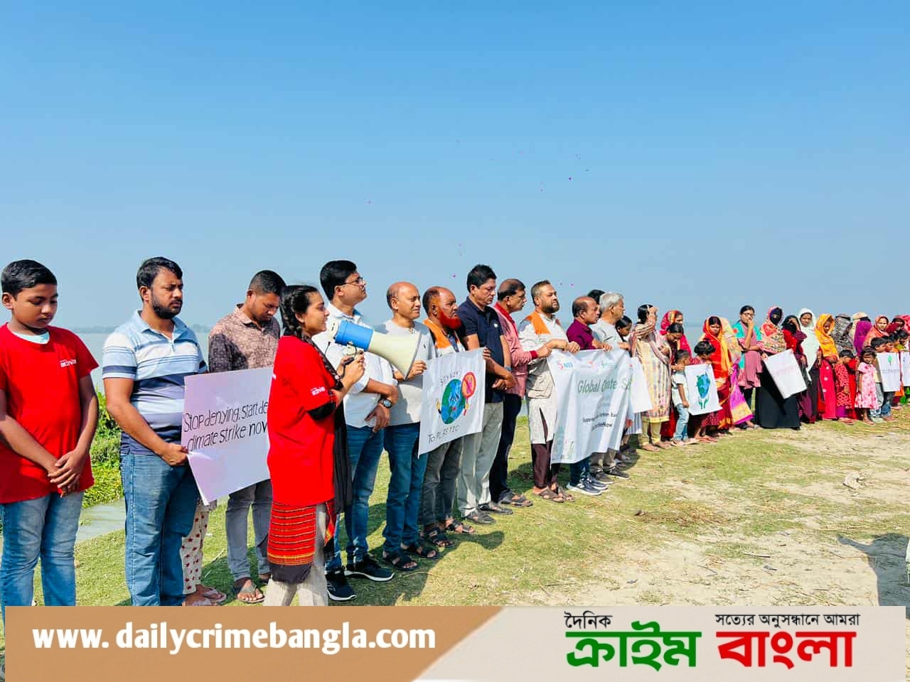 জলবাযূ পরিবর্তনের ঝুকি মোকাবেলা ও ক্ষতিপূরণের দাবী সম্মিলিত বিভিন্ন ব্যানার ফেস্টুন নিয়ে কয়েক হাজার যুবক ও ক্ষতিগ্রস্ত মানুষ কমসুচিতে অংশগ্রহণ করে।
