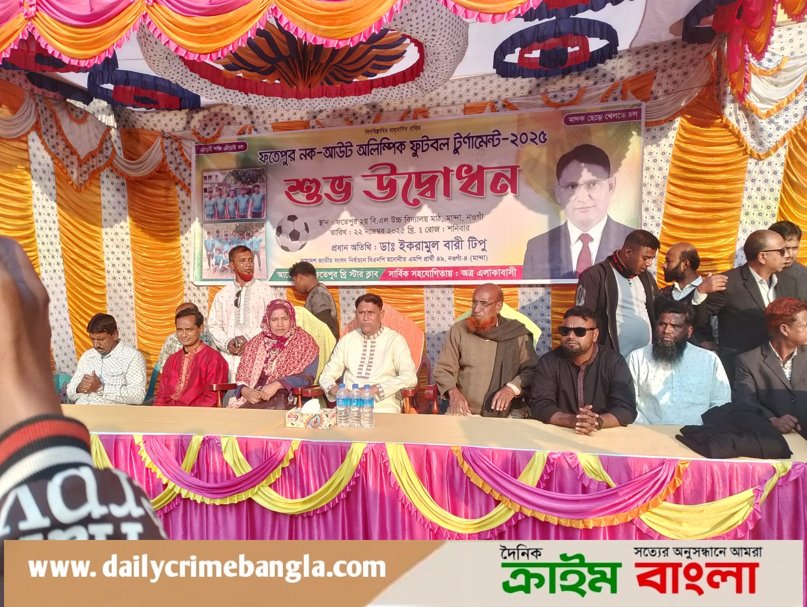 নওগাঁ জেলার মান্দা উপজেলার ফতেপুরে উৎসবমুখর পরিবেশে শুরু হলো থ্রী স্টার ক্লাব আয়োজিত “নক-আউট অলিম্পিক ফুটবল টুর্নামেন্ট–২০২৫”। স্থানীয় ক্রীড়াঙ্গনে ব্যাপক সাড়া জাগানো এ টুর্নামেন্টের উদ্বোধন অনুষ্ঠিত হয় শনিবার বিকেলে। বর্ণাঢ্য আয়োজনে উদ্বোধনী শোভাযাত্রা, জাতীয় সংগীত পরিবেশন এবং খেলোয়াড় ও কর্মকর্তাদের পরিচিতির মধ্য দিয়ে আনুষ্ঠানিক যাত্রা শুরু করে প্রতিযোগিতা।