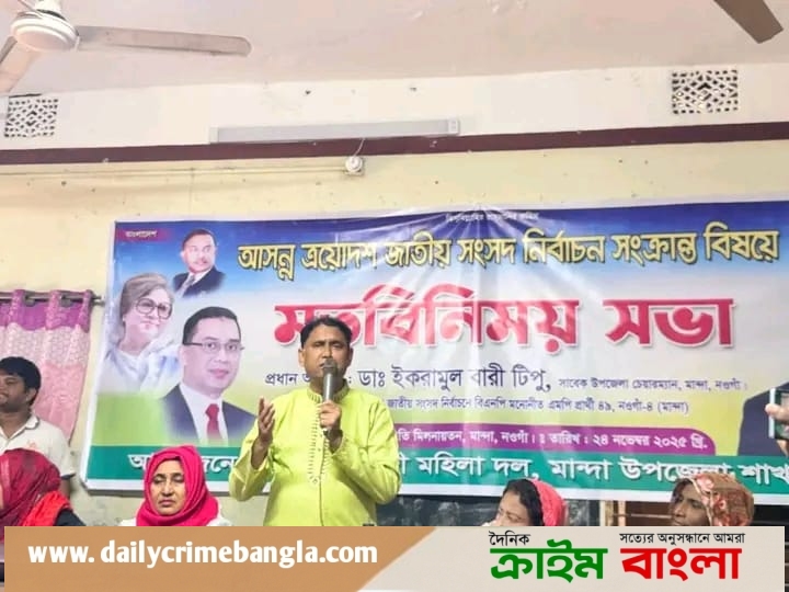 আসন্ন ১৩তম জাতীয় সংসদ নির্বাচনকে সামনে রেখে সোমবার (২৪ নভেম্বর) মান্দা উপজেলা প্রাথমিক শিক্ষক সমিতি মিলনায়তনে মহিলা দলের আয়োজিত মতবিনিময় সভায় প্রধান অতিথির বক্তব্যে তিনি এসব কথা বলেন।