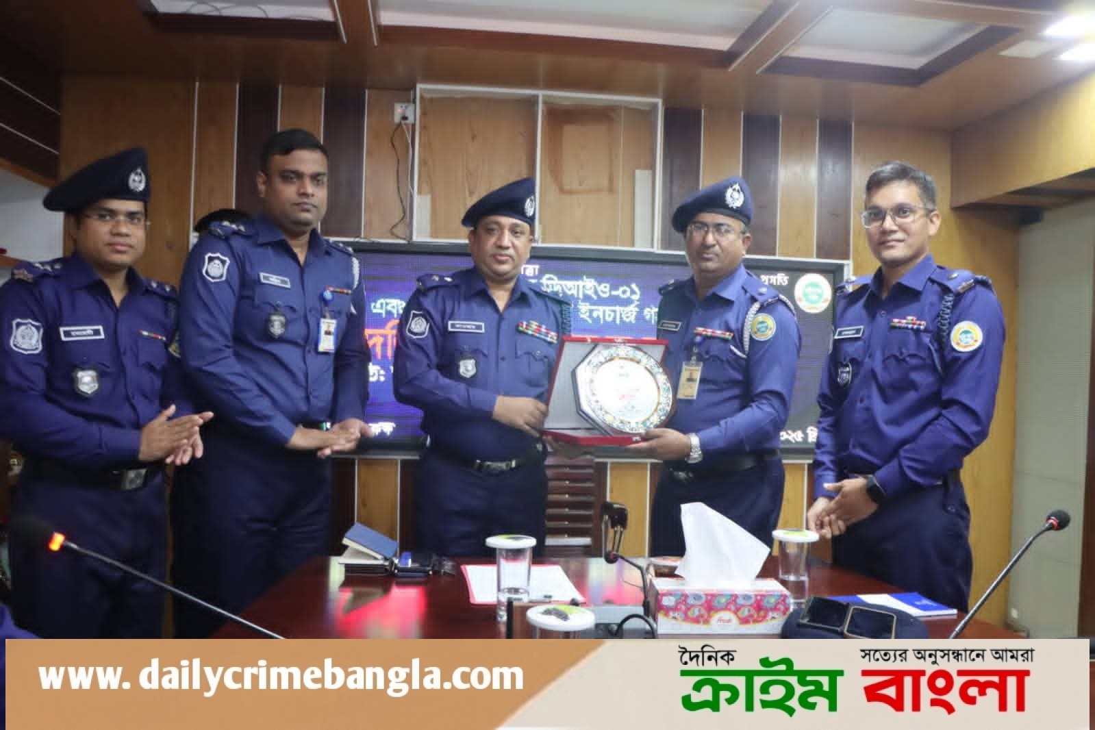 পরিশেষে মান্যবর পুলিশ সুপার মহোদয় বিদায়ী অফিসার ইনচার্জগণদের ভোলা জেলা পুলিশের পক্ষ থেকে সম্মাননা স্মারক প্রদান করেন।