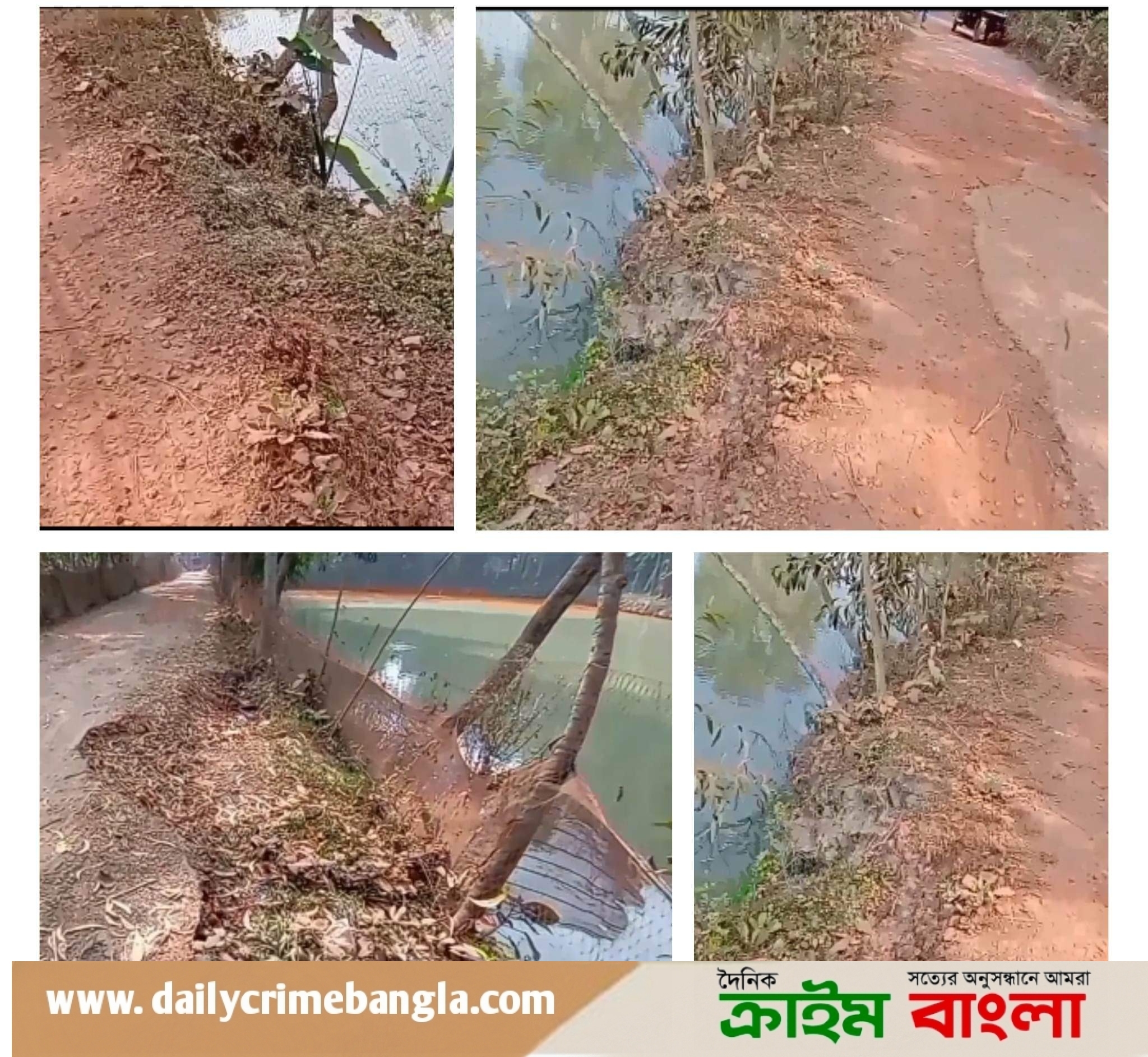 মঙ্গলবার (৩১শে জানুয়ারি) সরেজমিনে গিয়ে দেখা যায়, উপজেলার কাগজিরপুল সংলগ্ন মদনপুরা ইউনিয়নের পালপাড়া থেকে উত্তর দিকে মোল্লা বাড়ি পর্যন্ত পিচঢালা সড়কের কোলঘেষে অবস্থিত সার্ভেয়ার জাকির মৃধা নামে বড়সড় ৫/৬ টা মাছের ঘেড় রয়েছে। যা ফলে ঘেড়ের পানি ওঠানামা করায় সড়কের পাশ ভেঙে ভেঙে এখন সড়কটি যানবাহন চলাচলের জন্য বিপদজনক হয়ে উঠেছে। বিভিন্ন জায়গায় দেখা গেছে গর্ত ও ঘেড়ে সড়ক বিলিন হওয়ার দৃশ্য।
