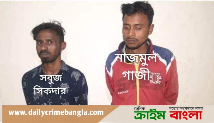 আটককৃত মোঃ সবুজ সিকদার (৩৩), উপজেলার নাজিরপুর ইউনিয়নের রায় তাতেরকাঠী গ্রামের জামাল সিকদারের ছেলে এবং মো. নাজমুল গাজী (৩০), সূর্যমনি ইউনিয়নের ৮ নং ওয়ার্ডের সুলতান গাজীর ছেলে।
