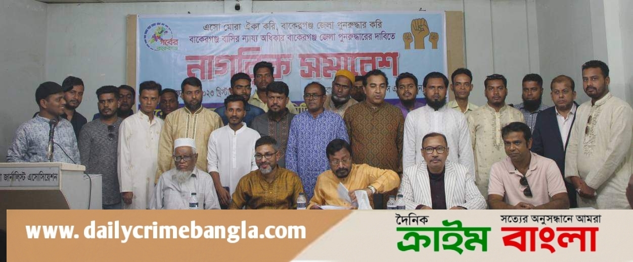 সামাজিক সংগঠন গর্বের বাকেরগঞ্জ এর পক্ষ থেকে বাকেরগঞ্জ জেলা পুনরুদ্ধার কমিটি ১৭ ফেব্রুয়ারি বেলা ৩.৩০ ঘটিকায় বাংলাদেশ ফটো জার্নালিস্টস এসোসিয়েশনের মিলনায়তনে বাকেরগঞ্জ উপজেলার বিশিষ্টজনদের উপস্থিতিতে নাগারিক সমাবেশের আয়োজন করেন। গর্বের বাকেরগঞ্জের প্রতিষ্ঠাতা ও সভাপতি সমাজচিন্তক মোজাম্মেল হোসেন মোহনের সভাপতিত্বে নাগরিক সমাবেশের মূল প্রবন্ধ উপস্থাপন করেন বাকেরগঞ্জ জেলা পুনরুদ্ধার কমিটির সম্পাদক মঈন-উল-ইসলাম কবির ও সমাবেশ পরিচালনা করেন গর্বের বাকেরগঞ্জের সহ-সভাপতি মো. আলাউদ্দিন আজাদ।