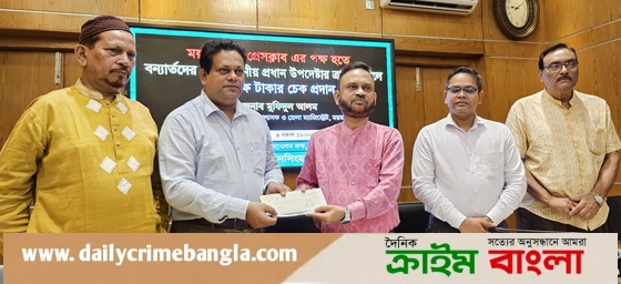 ফেনী, নোয়াখালী, কুমিল্লাসহ দেশের বিভিন্ন জেলায় ক্ষতিগ্রস্ত বন্যার্তদের জন্য ময়মনসিংহ প্রেসক্লাব ও ক্লাব সদস্যদের পক্ষ থেকে প্রধান উপদেষ্টার ত্রাণ ও কল্যাণ তহবিলে পাঁচ লাখ টাকা প্রদান করা হয়েছে। মঙ্গলবার সকালে