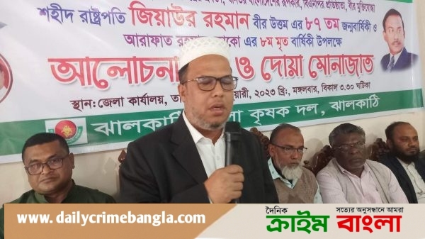 ঝালকাঠি প্রতিনিধি॥ ঝালকাঠিতে জাতীয়তাবাদী কৃষকদল জেলা শাখার উদ্যোগে বিএনপি’র প্রতিষ্ঠাতা শহীদ রাষ্ট্রপতি জিয়াউর রহমানের ৮৭তম জন্মবার্ষিকী ও আরাফাত রহমান কোকোর ৮ম মৃত্যুবার্ষিকী উপলক্ষে আলোচনা সভা ও দোয়া মিলাদের আয়োজন করা