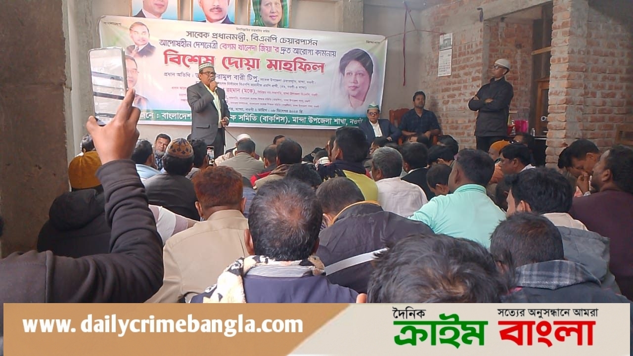 “মান্দার আকাশজুড়ে একটাই আকুতি—অসুস্থ দেশনেত্রীকে ফিরে চাই! বেগম খালেদা জিয়ার আরোগ্য কামনায় কলেজ শিক্ষক সমিতির আবেগময় দোয়া মাহফিল”/দৈনিক ক্রাইম বাংলা।।